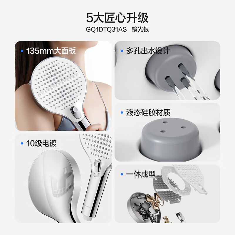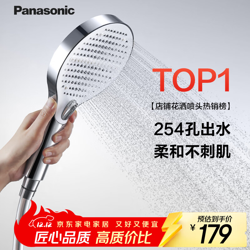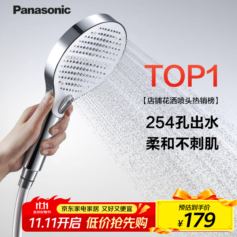 松下(Panasonic)手持按摩花洒加大多孔微增压家用浴室洗澡淋浴单喷头C5银白色