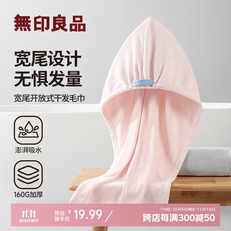 无印良品干发毛巾7A级抗菌加大加厚强吸水速干擦头A类包头巾擦脸巾浅粉色