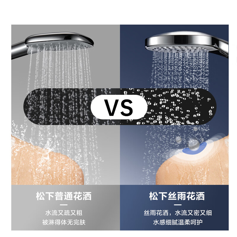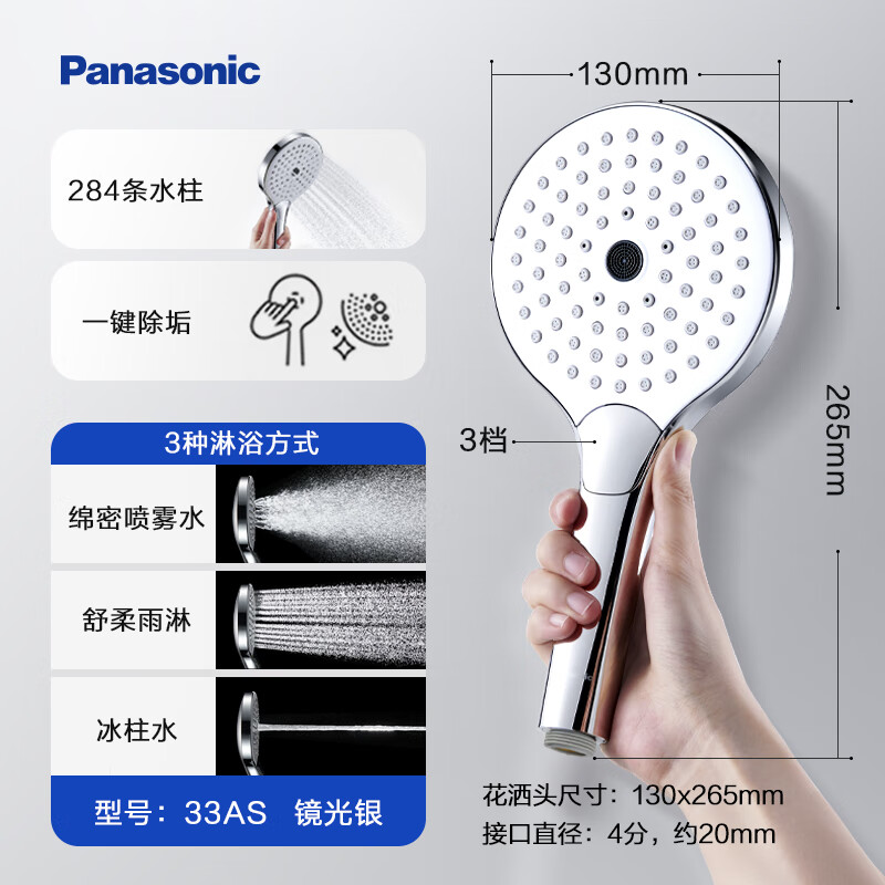 松下(Panasonic)一键除垢手持花洒 多孔出水家用浴室洗澡淋浴单喷头C6银白色