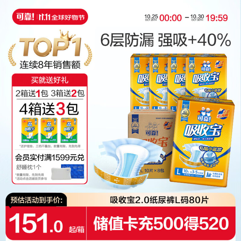 可靠(COCO)吸收宝2.0成人纸尿裤L80片(臀围95-120cm)老年人孕妇尿不湿术后