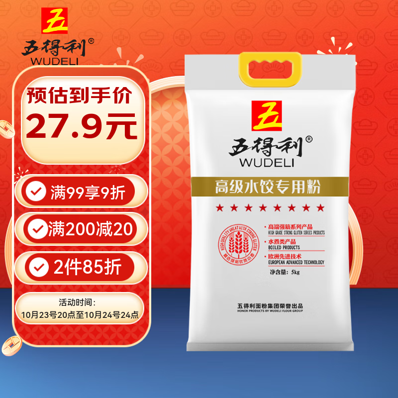 五得利高级饺子粉10斤 面粉水煮类面食饺子混沌拉面专用小麦粉