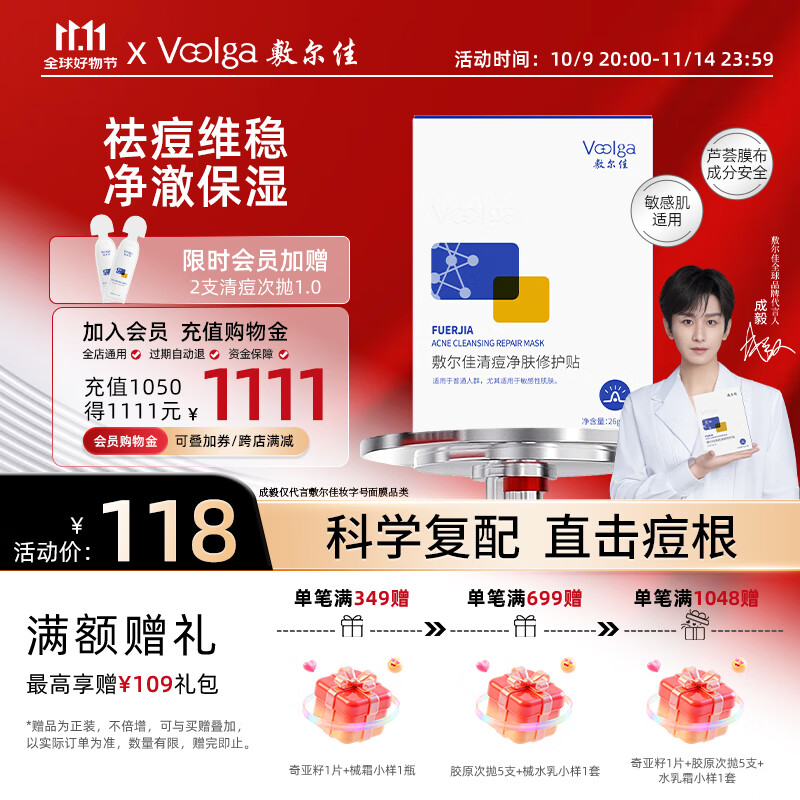 敷尔佳 【成毅同款】清痘净肤修护贴26g*5片 面膜祛痘油痘肌补水保湿