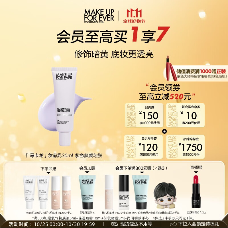 玫珂菲饰底隔离霜修颜妆前乳匀肤提亮(紫色)30ml 生日礼物送女友