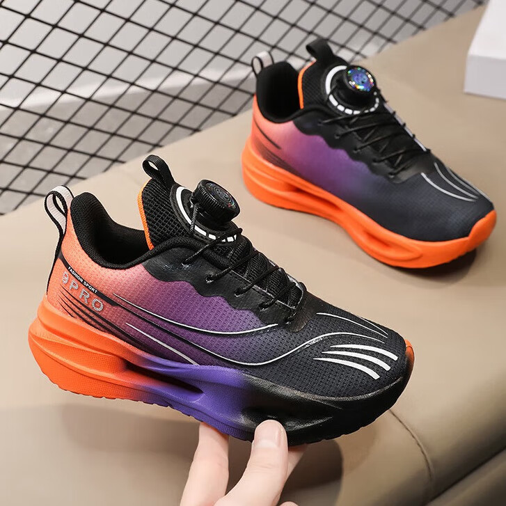 女童鞋赤兔9Pro儿童跑鞋男童学生网面透气中大童跑步鞋软底运动鞋 夜幕 【旋转纽扣款-免系带】 39