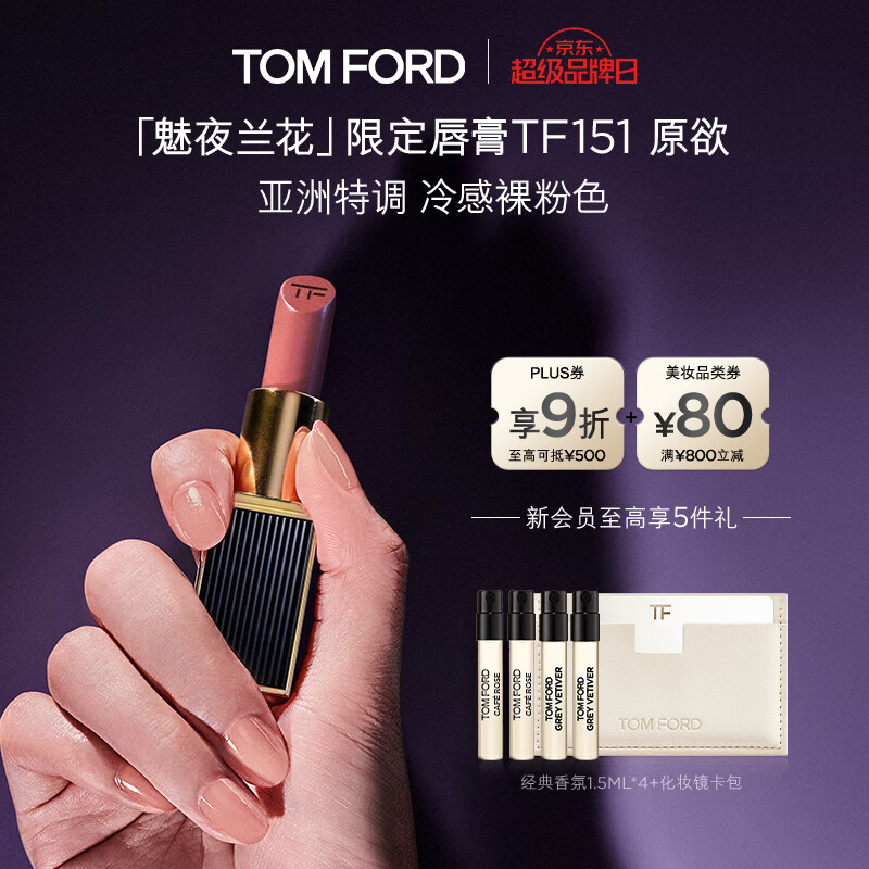 TOM FORD魅夜兰花限定黑管水感缎光TF151口红裸粉色 唇膏化妆品生日礼物女