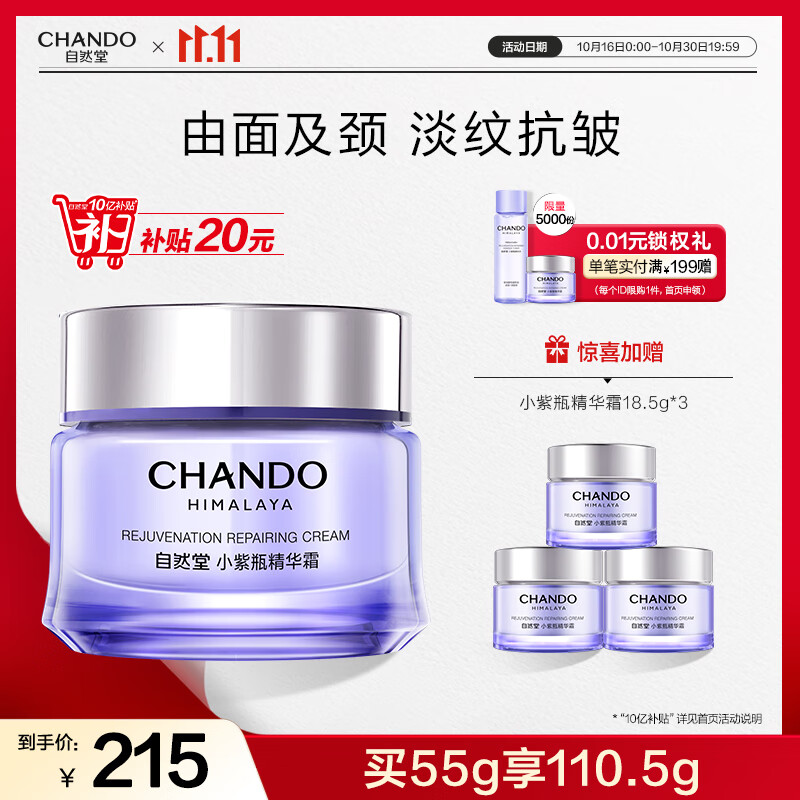 自然堂小紫瓶精华霜55g 修护紧致抗疲老面霜护肤品女生日礼物