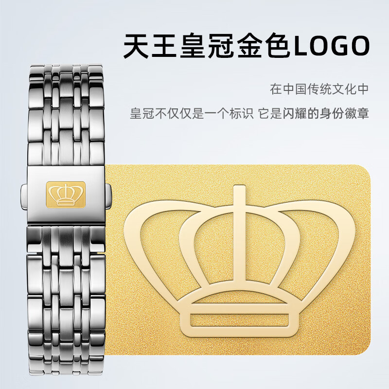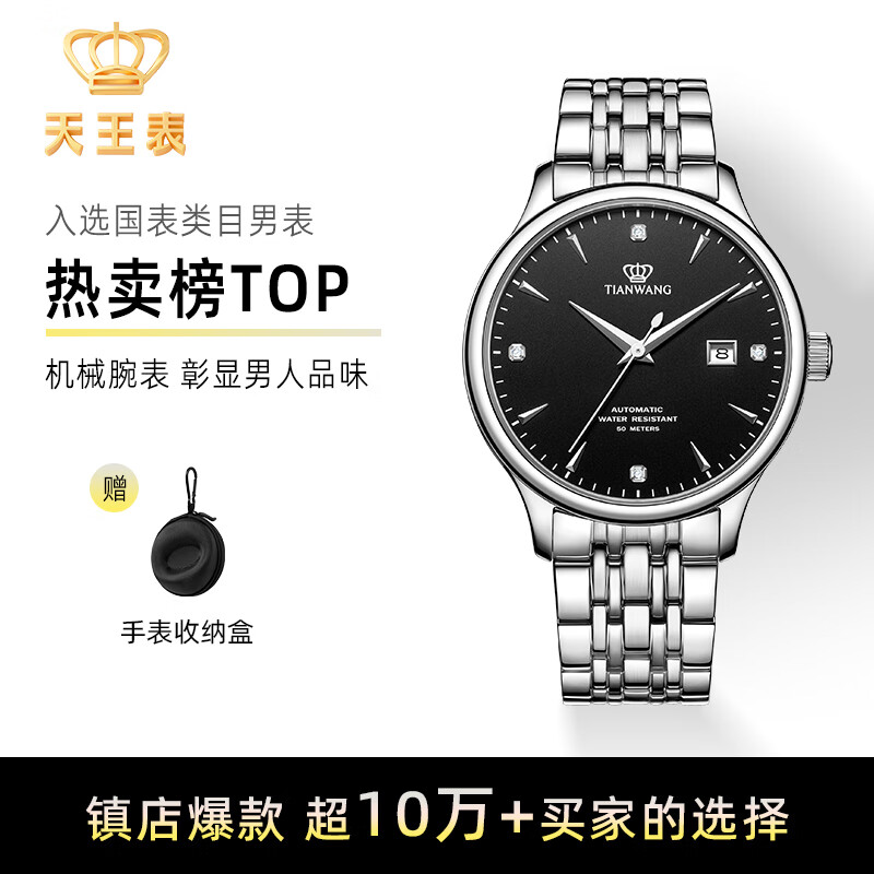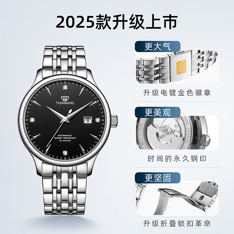 天王(TIAN WANG)男手表钢带自动机械表商务防水情侣腕表情人节礼物送男友5876 【升级版】黑盘机械男表