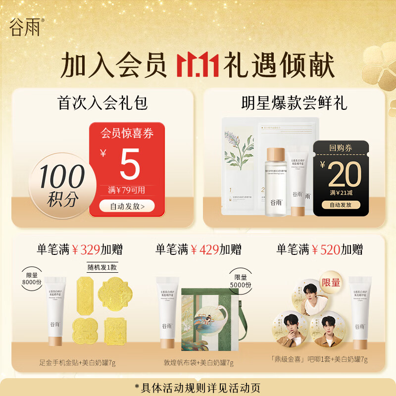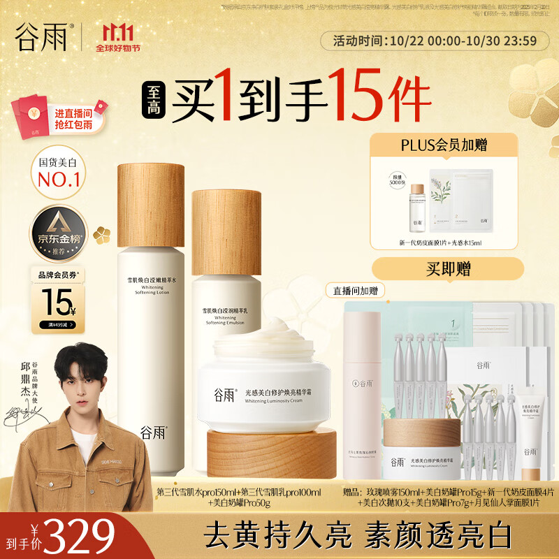 谷雨邱鼎杰同款第三代雪肌水乳霜套装 美白提亮补水保湿化妆品礼物