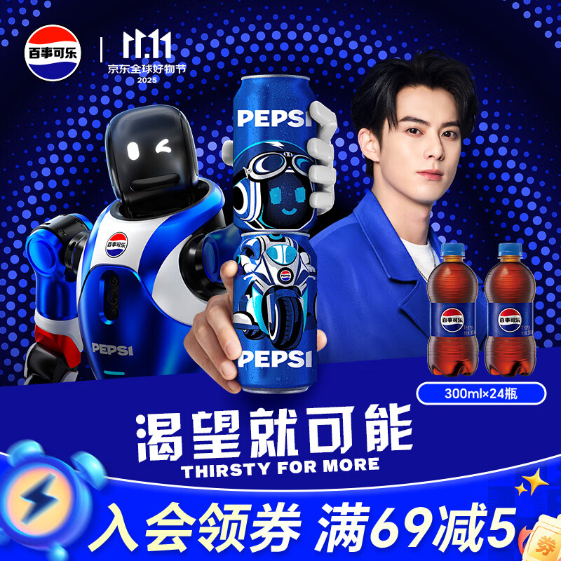 百事可乐Pepsi 碳酸饮料汽水 300ml*24瓶 小瓶整箱装