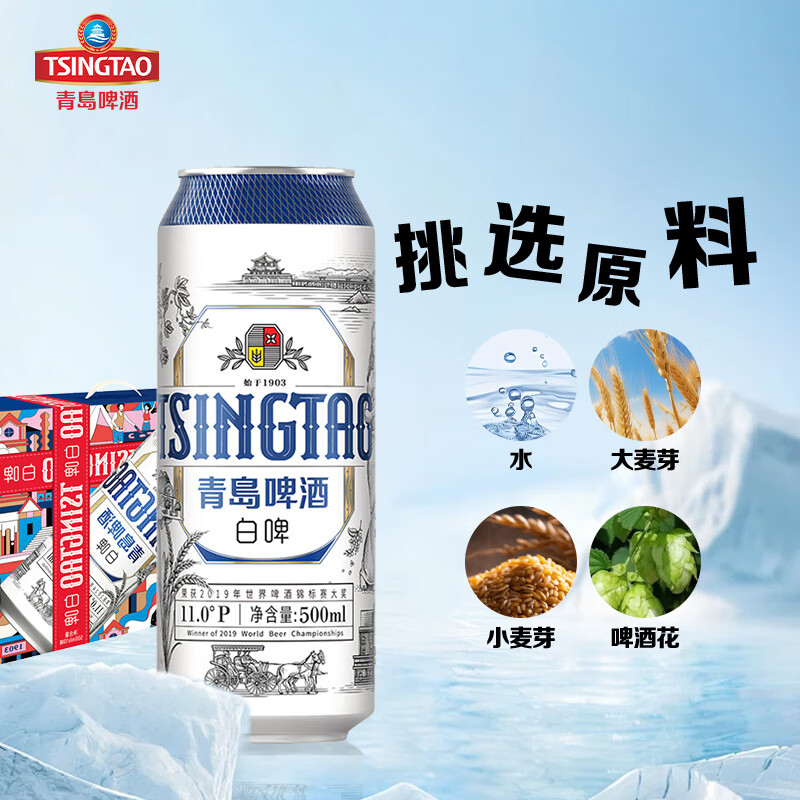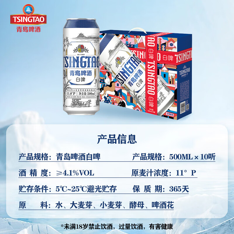 青岛啤酒(TsingTao)全麦白啤500ml*10听 礼盒装 双十一热卖