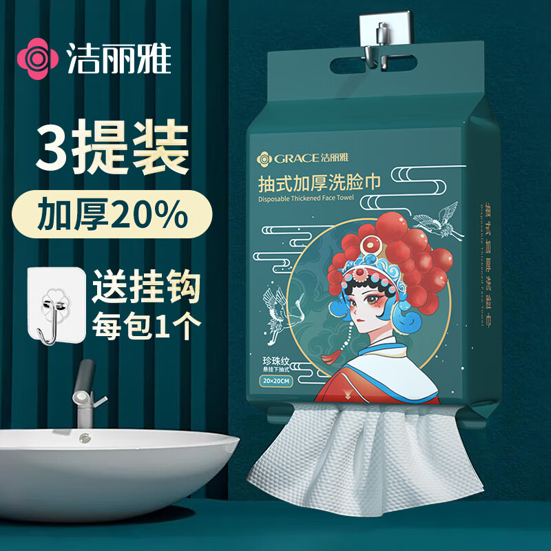 洁丽雅(Grace)一次性洗脸巾加厚母婴干湿两用绵柔巾珍珠纹吸水洁面巾120抽*3包