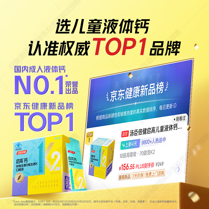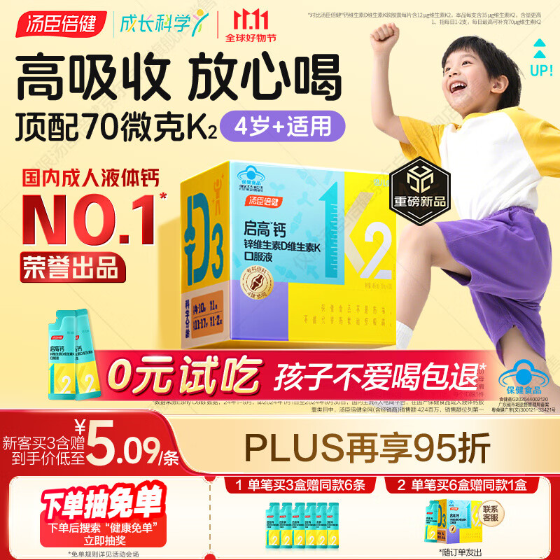 汤臣倍健启高儿童液体钙30条 维生素d钙片儿童4-17岁助长高学生青少年钙片