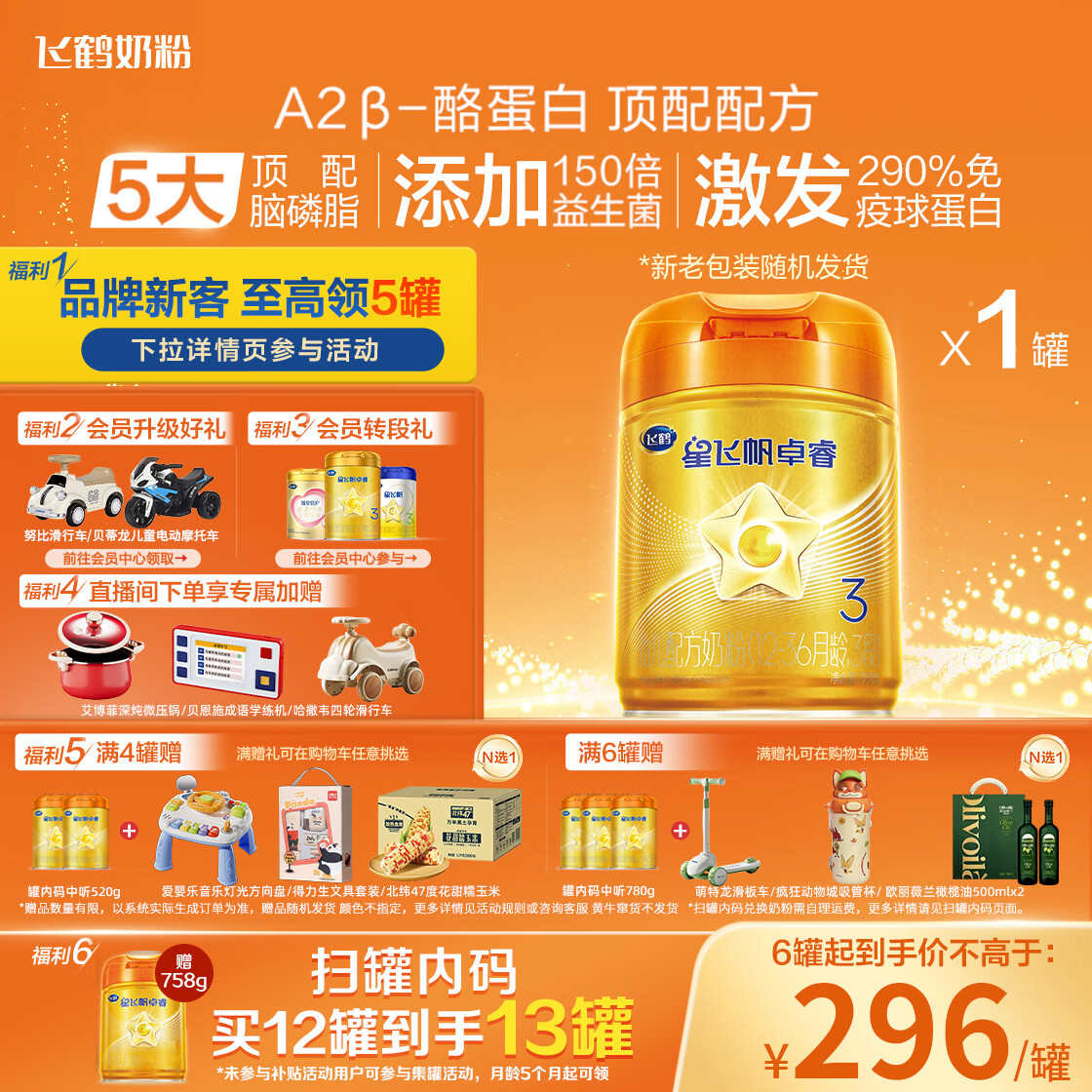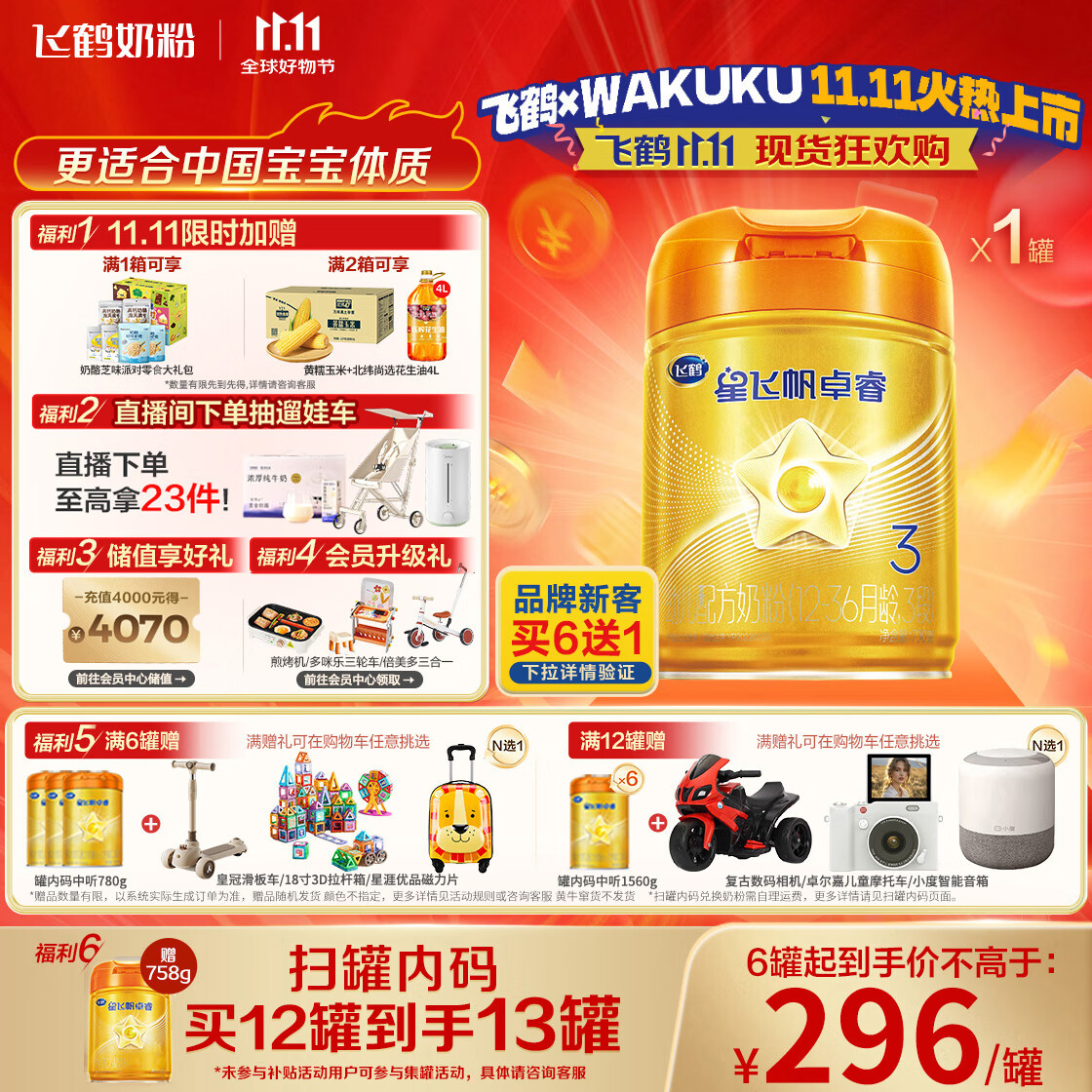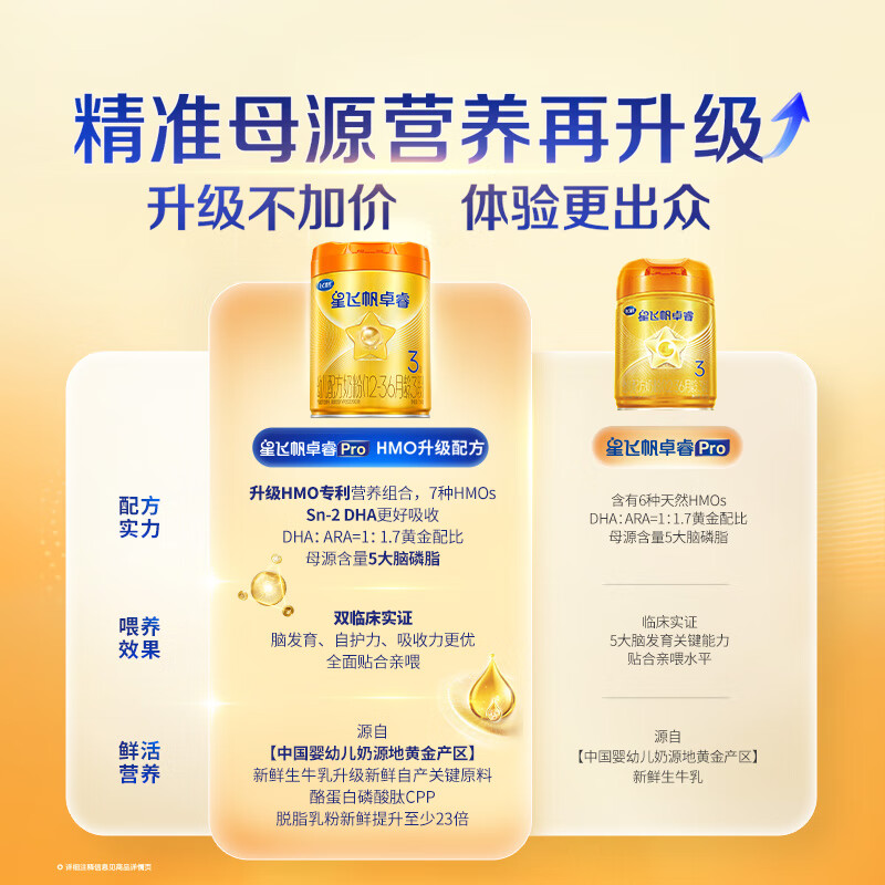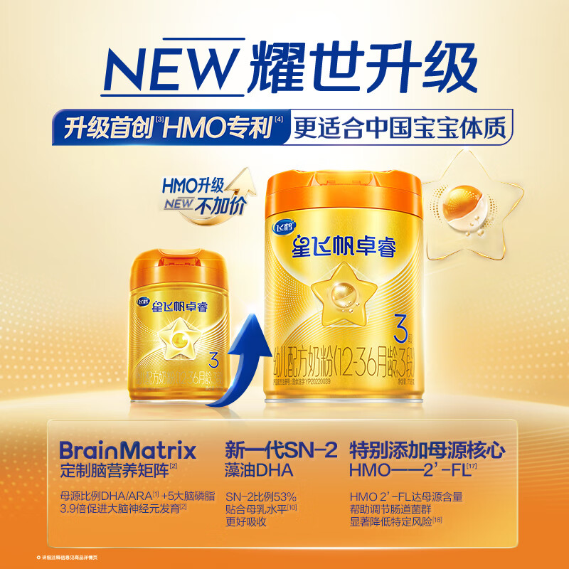 飞鹤星飞帆卓睿Pro A2β酪蛋白3段(1-3岁)幼儿配方奶粉758g 老爸抽检