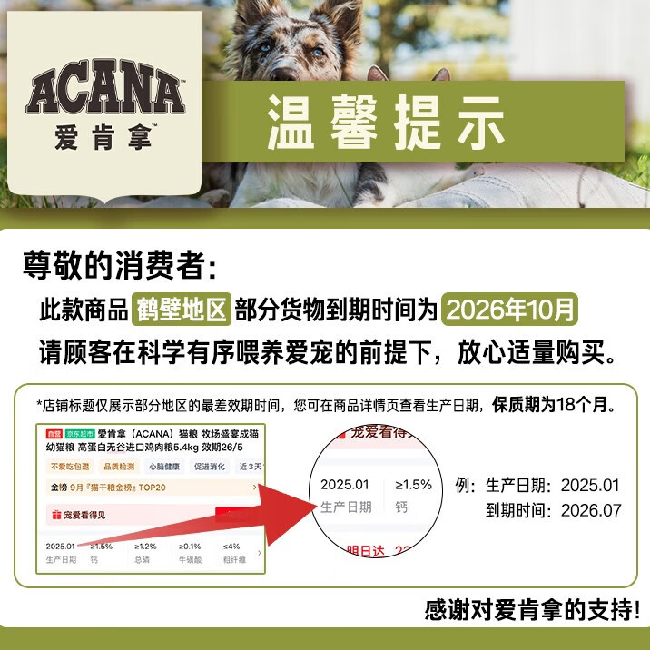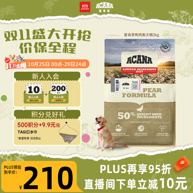 愛肯拿(ACANA)狗粮 鸭肉梨成犬幼犬 低敏去泪痕全价通用原装进口粮2kg效期26/11