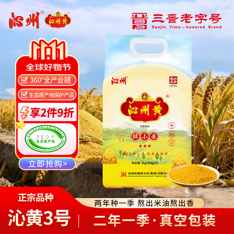 沁州黄小米2斤鲜小米( 500g真空小包装*2袋)山西特产五谷杂粮粗粮新米