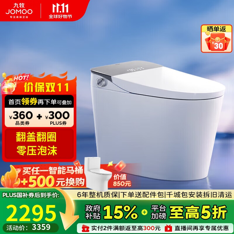 九牧(JOMOO)无水压限制智能马桶魔力泡按键脚感翻盖坐便器ZS710 305坑距