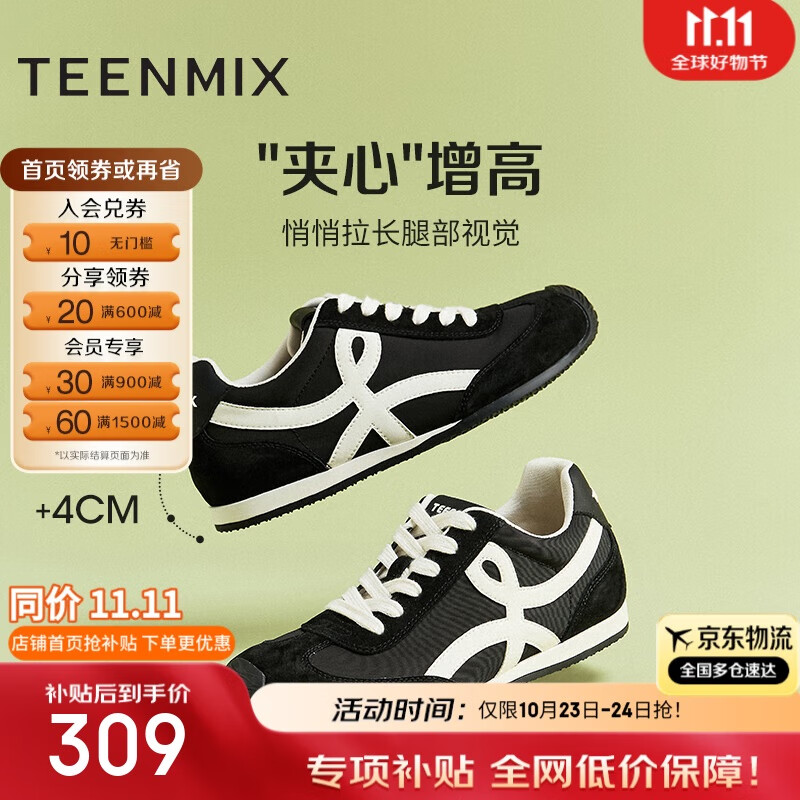 天美意【彩虹夹心糖】阿甘德训鞋女鞋子 黑色(4cm) 35