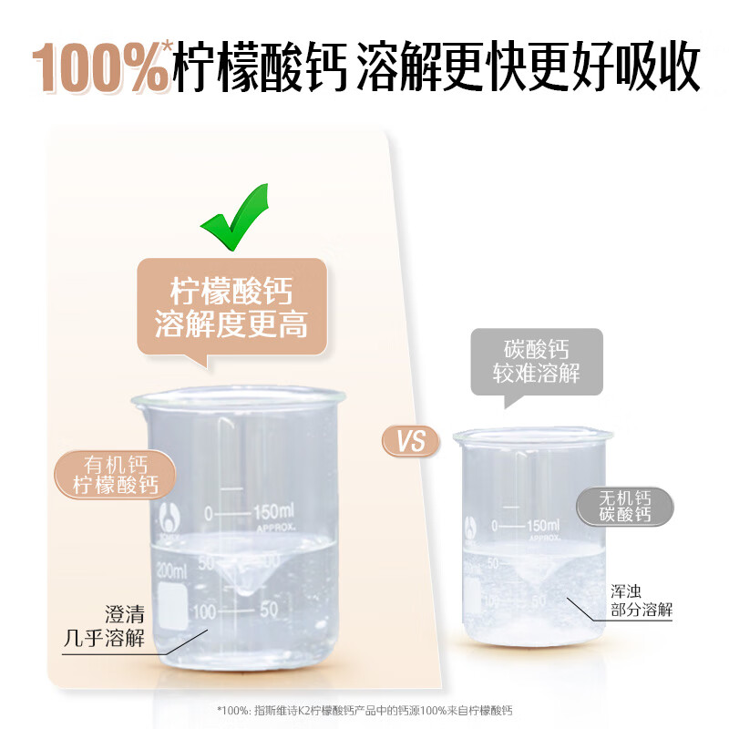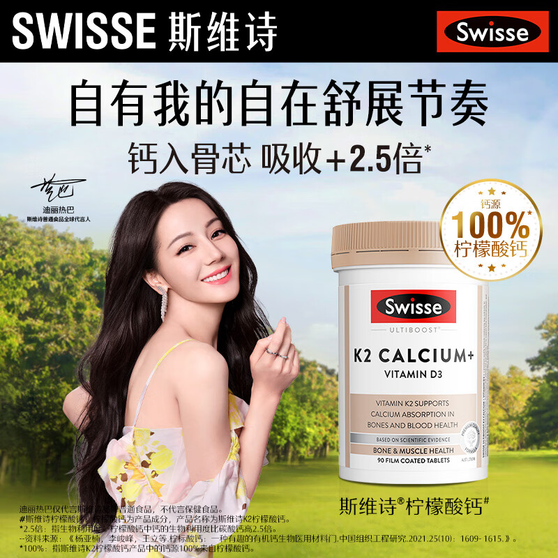 Swisse斯维诗 钙片K2柠檬酸钙 VD成人中老年人孕妇补钙温和吸收90片*2瓶