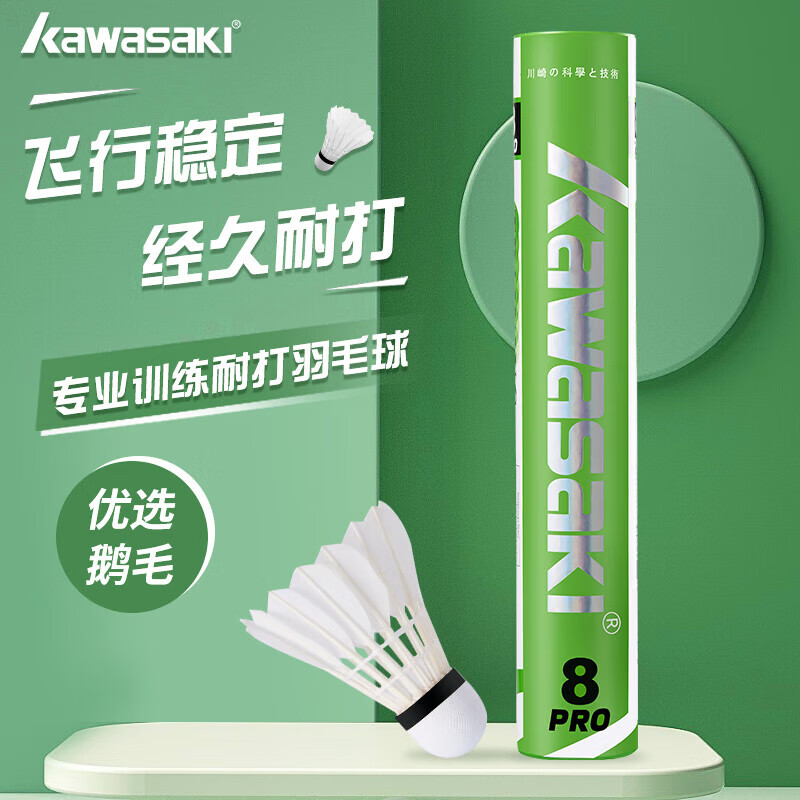 川崎(KAWASAKI)羽毛球 训练级8号pro耐打专业比赛训练鹅毛球12个装