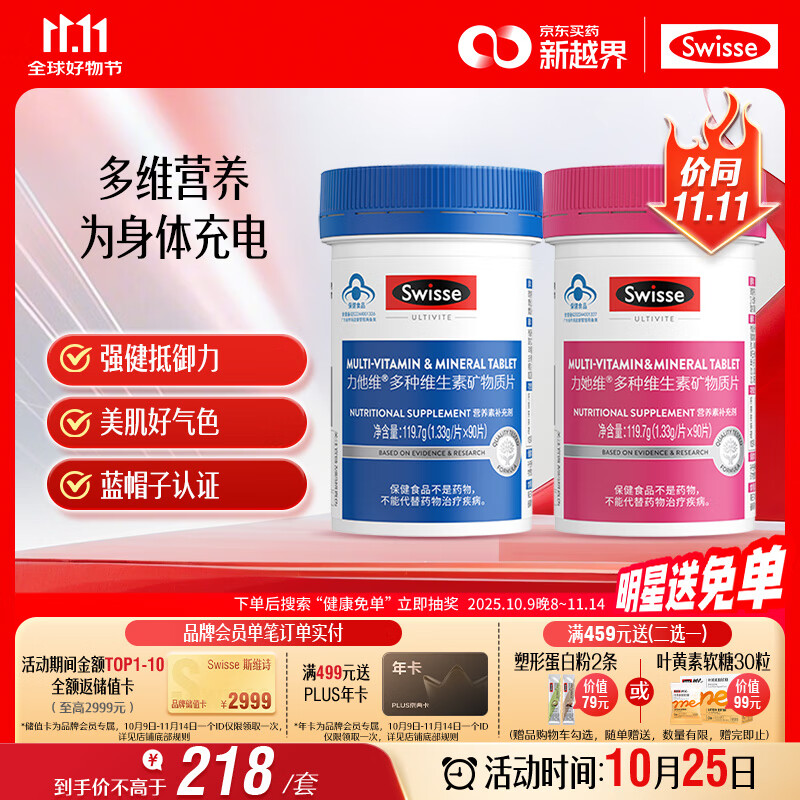 Swisse斯维诗男女士多维 复合维生素矿物质 含维生素B族维D维E 90片*2瓶