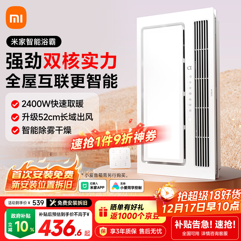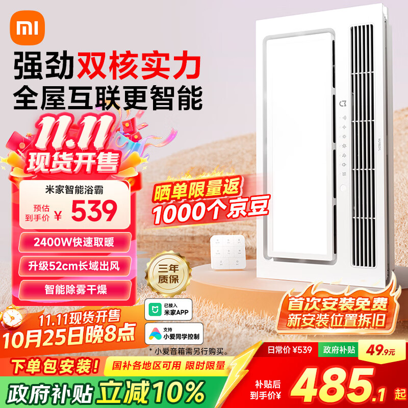 米家(MIJIA)智能浴霸【政府补贴】快速升温双核多功能风暖照明一体 智能控制