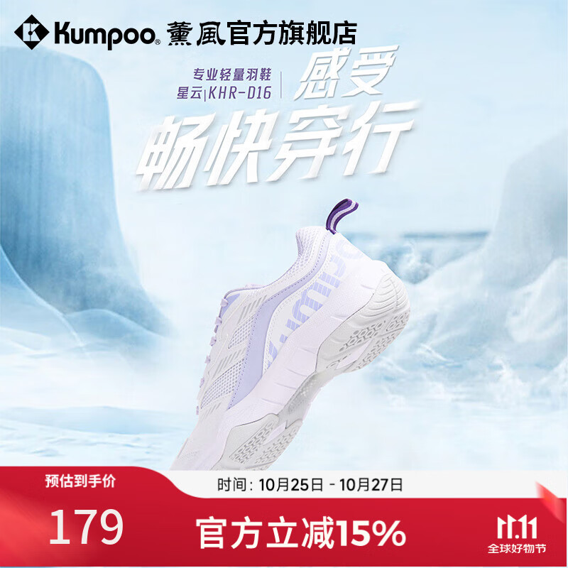 薰风(KUMPOO)星云D16羽毛球鞋 透气百搭防滑减震熏风入门进阶男女同款运动鞋 星云D16 白紫色 39