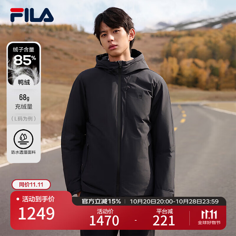 FILA斐乐官方男装羽绒服冬季新款时尚休闲连帽防水防湿外套 正黑色-BK L 175/96A