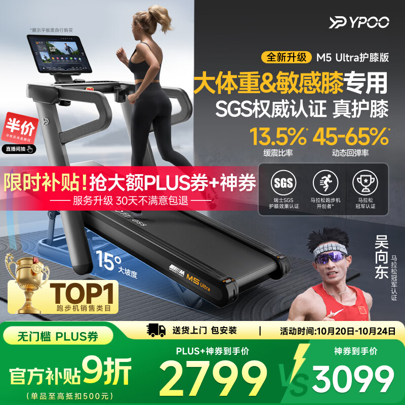 易跑YPOO马拉松跑步机家庭用爬坡度高端健身房折叠护膝静音智能器材M5 马拉松Ultra护膝版/大体重&敏感膝专用