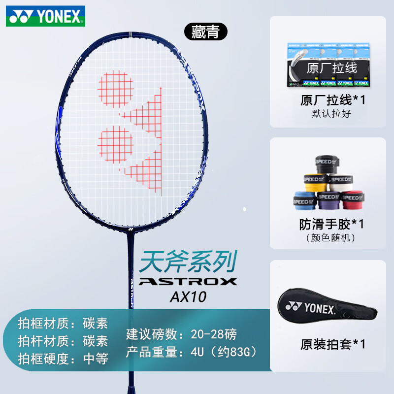 尤尼克斯(YONEX)羽毛球拍天斧10藏青色AX10超轻全碳素纤维进攻型单拍已穿线附手胶