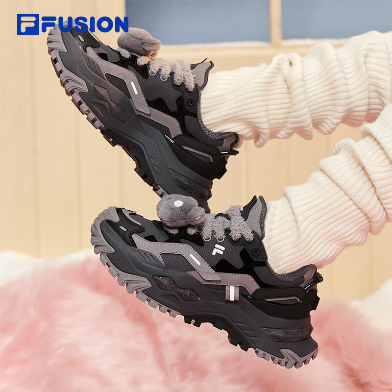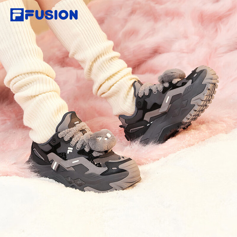 FILAFUSION 斐乐硬糖厚底女鞋增高老爹鞋新款休闲鞋运动鞋女 锻铁灰/黑舞鞋-FT 37.5