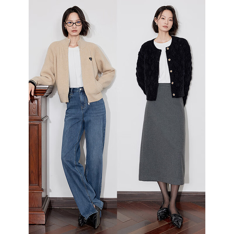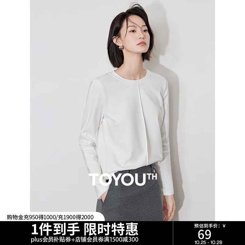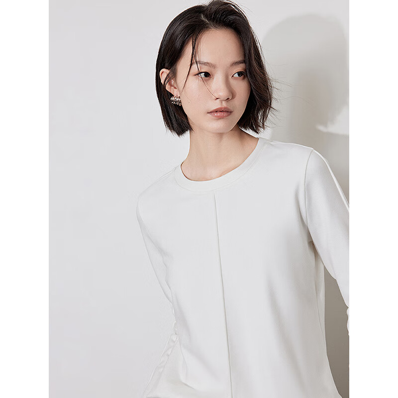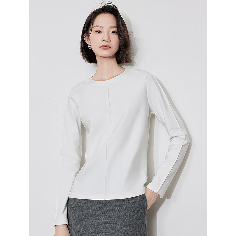 初语立体分割线长袖T恤女2024年秋冬简约舒适打底衫上衣 米白色 M