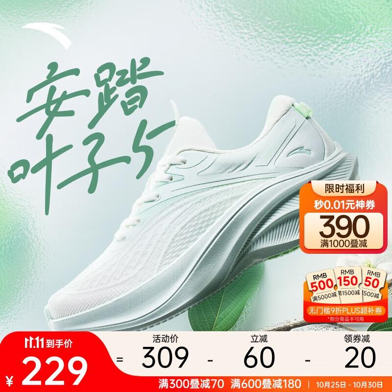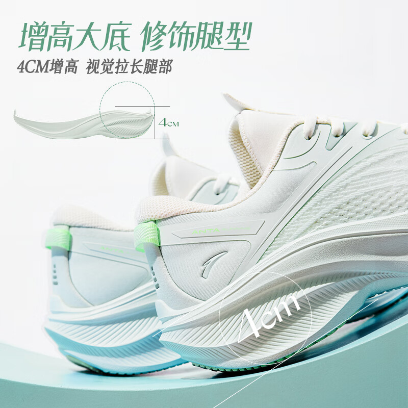 安踏叶子5丨轻质厚底跑步鞋女鞋轻便回弹减震耐磨增高运动鞋