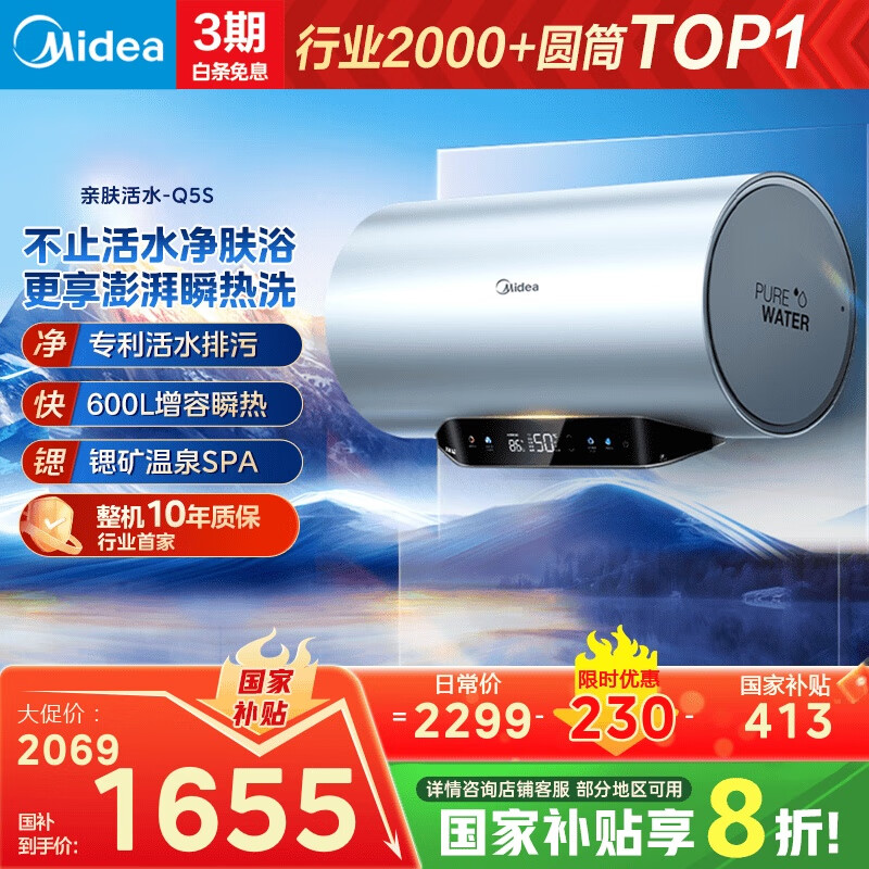 美的(Midea)【亲肤活水Q5S】60L电热水器 瞬热洗富锶养肤温泉浴 免换镁棒3200W速热家用储水式国家补贴20%