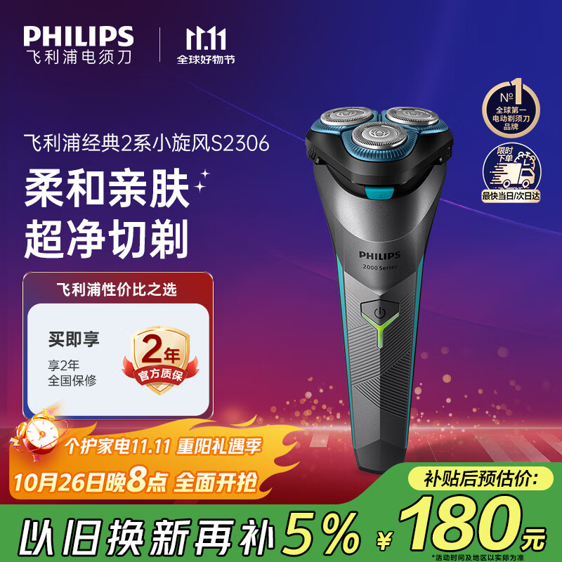 飞利浦(PHILIPS)电动剃须刀经典2系小旋风 超净切剃刮胡刀 送男友送老公 父亲生日礼物