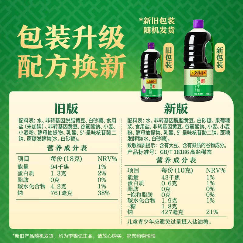 李锦记 薄盐系列 薄盐生抽 2.1kg【减盐 一级】0添加防腐剂 味鲜 酱油