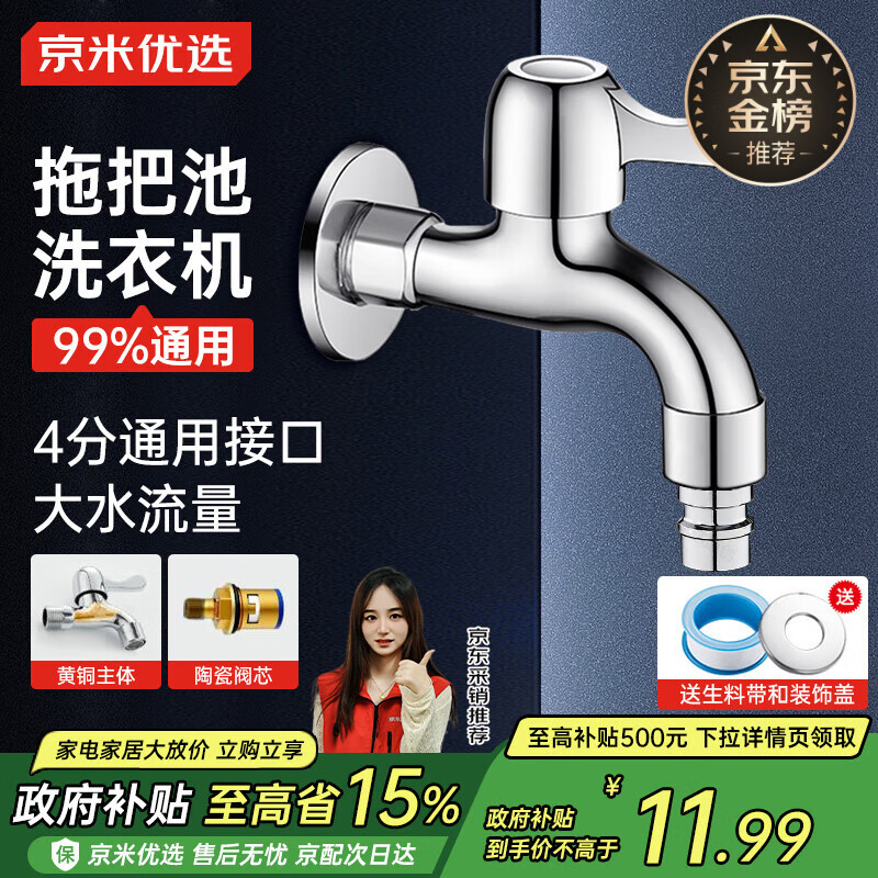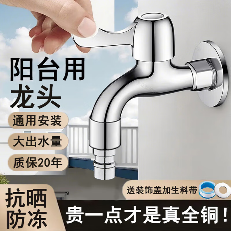 京米优选全铜水龙头单冷家用阳台洗衣机拖把池墩布池专用通用4分入墙龙头
