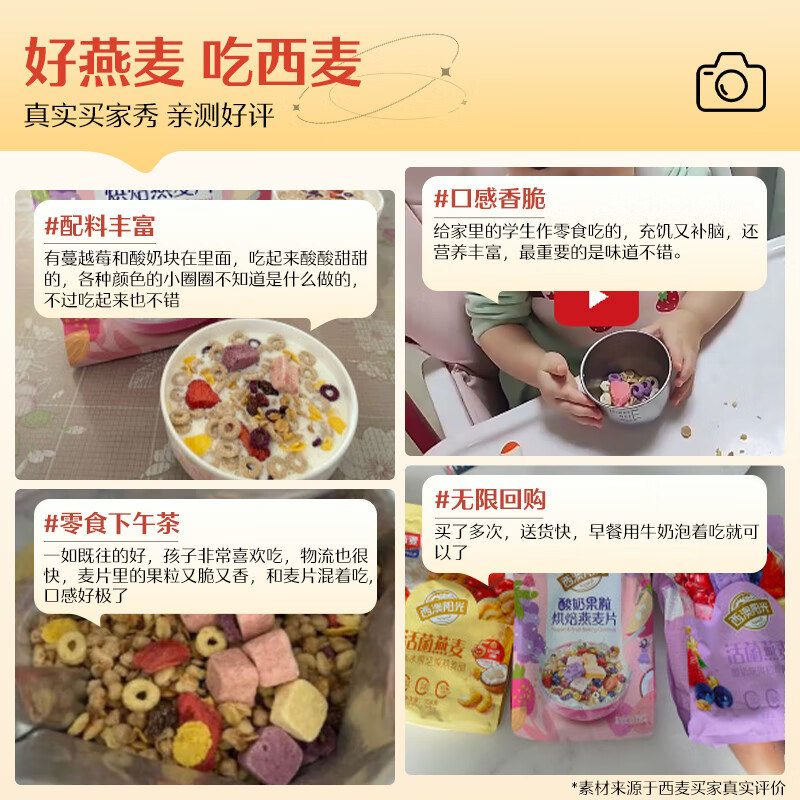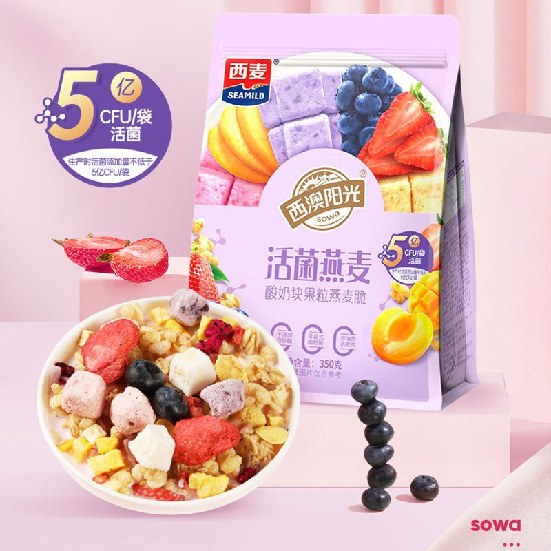西麦酸奶块果粒燕麦脆350g 水果燕麦片营养早餐五谷代餐干吃休闲零食