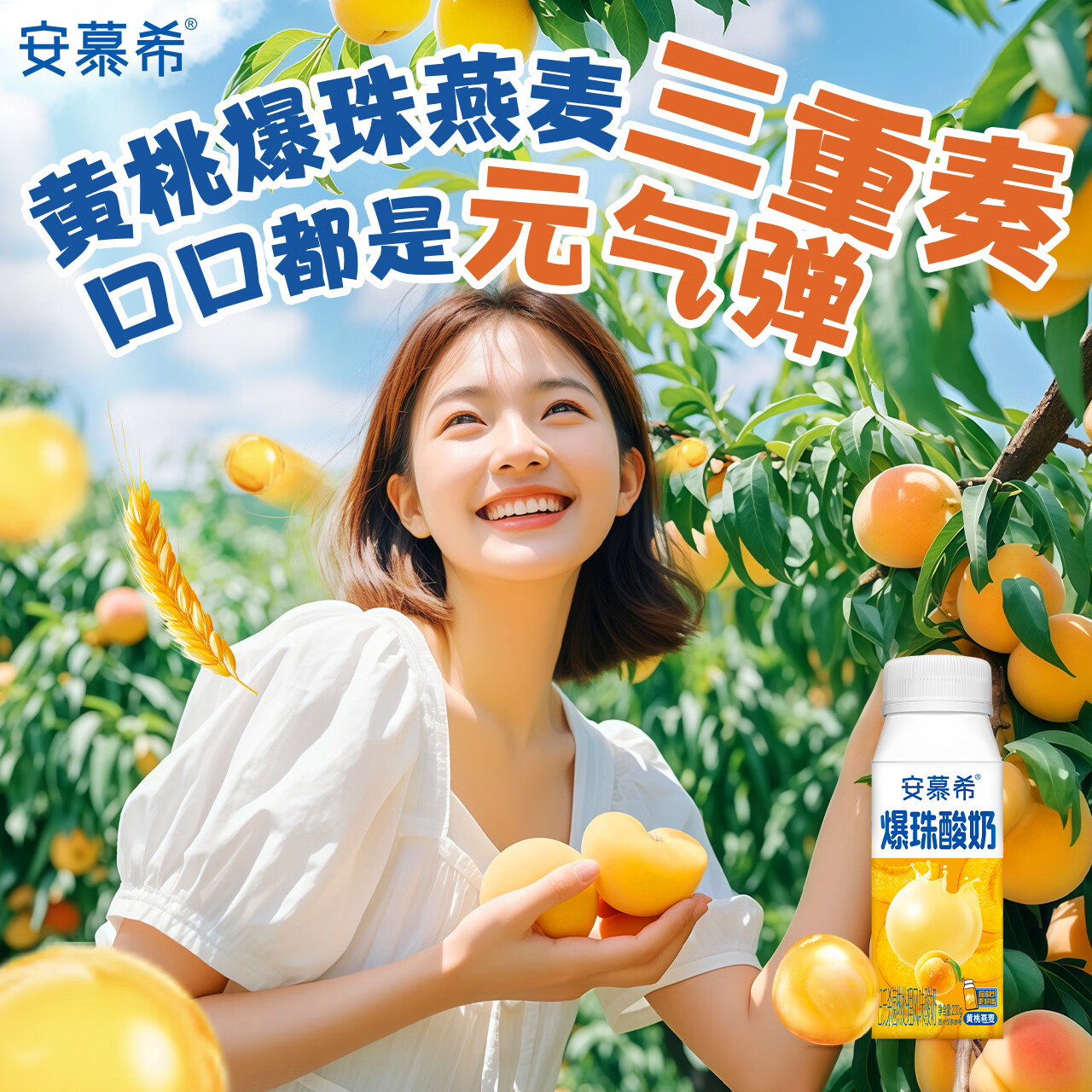 伊利【新鲜日期】安慕希黄桃燕麦爆珠酸奶200g*8盒/箱 礼盒装