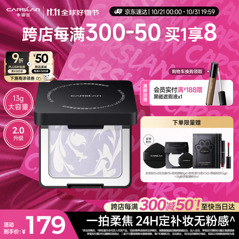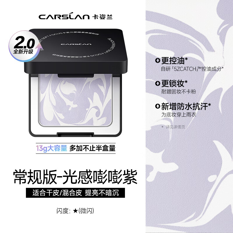 卡姿兰(Carslan)黑磁粉饼2.0大容量(嘭嘭紫)13g 定妆控油遮瑕散粉防汗不脱妆 礼物