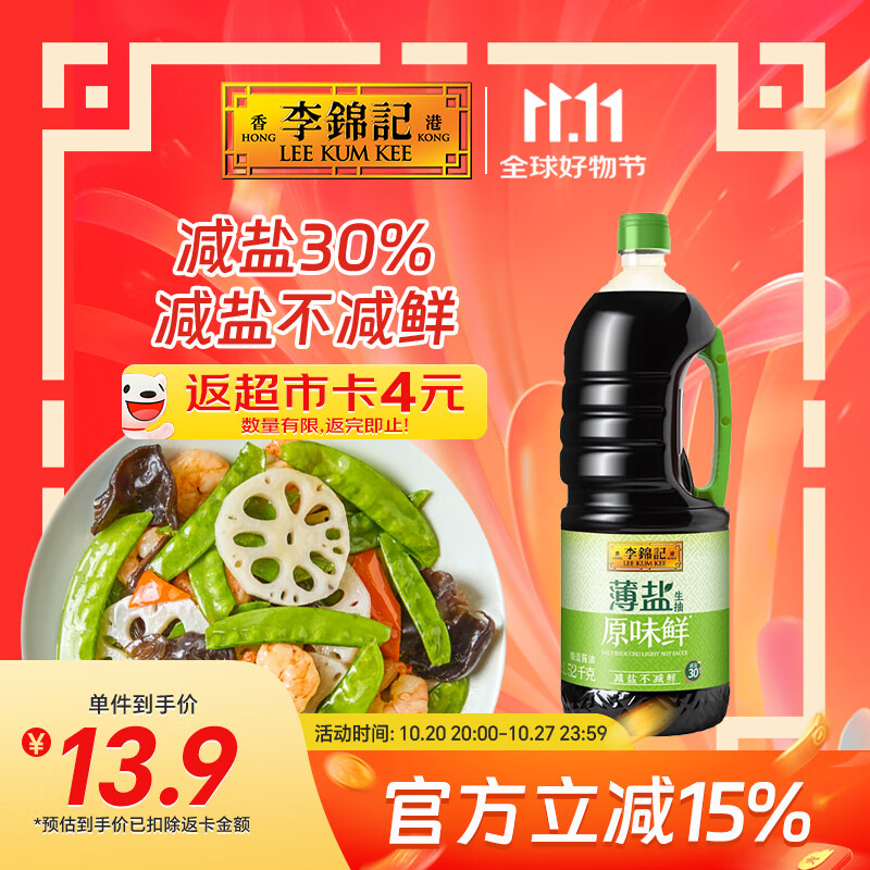 李锦记 薄盐生抽原味鲜1.52kg 【减盐】 美味健康之选 酱油