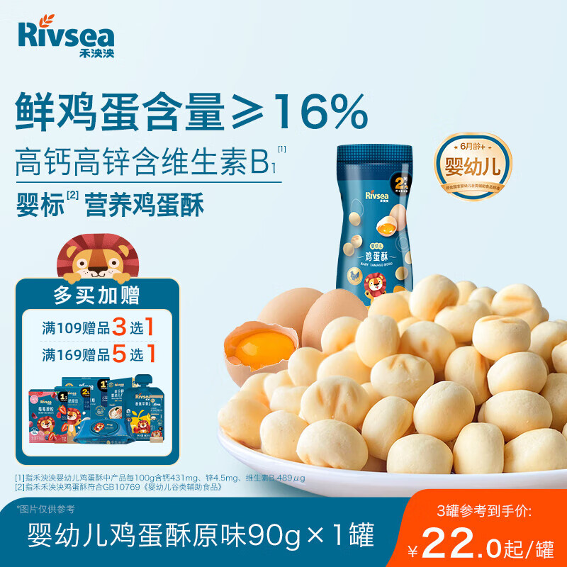 禾泱泱婴幼儿鸡蛋酥原味90g 宝宝婴儿零食 小馒头饼干高钙高铁高锌6月+