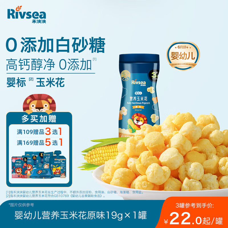 禾泱泱婴幼儿营养玉米花原味19g 高钙宝宝零食0添加白砂糖锻炼抓握6月+