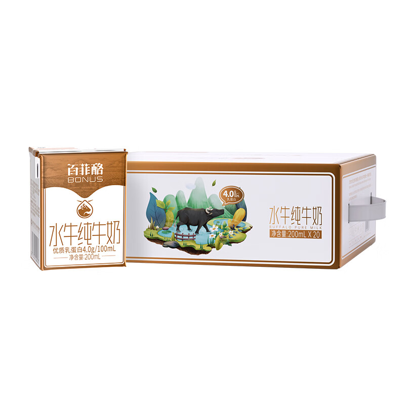 百菲酪水牛纯牛奶200ml*20盒 4.0g优质乳蛋白 礼盒装