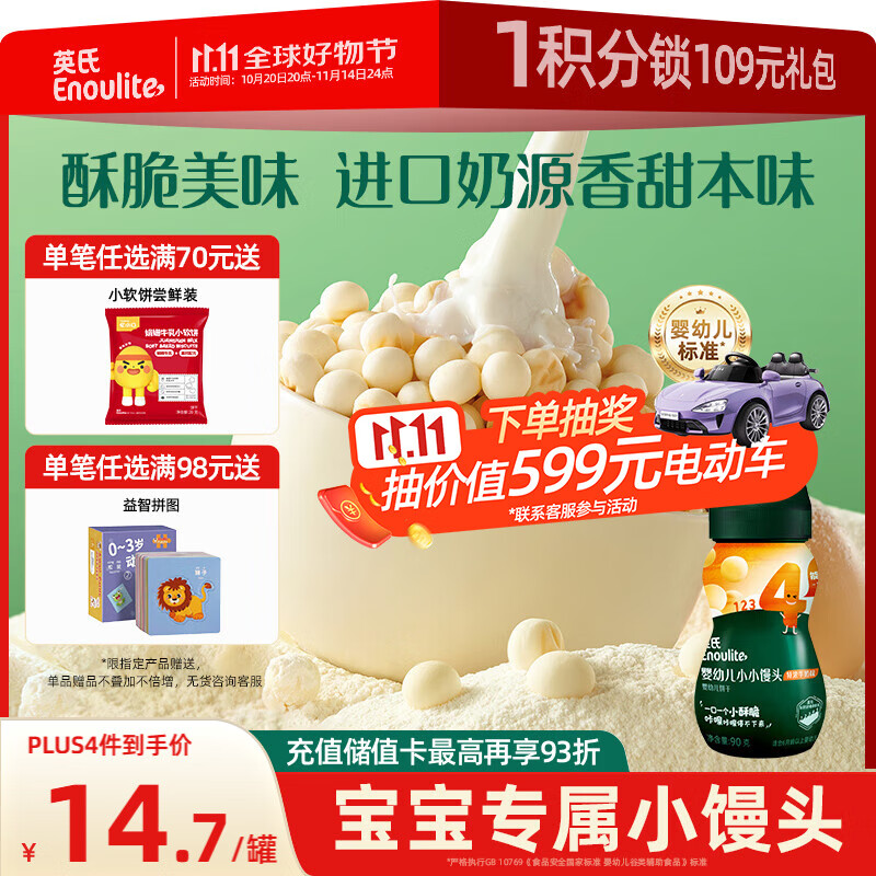英氏(Engnice)婴幼儿小小馒头特浓牛奶味 婴儿零食辅食饼干营养奶豆宝宝零食90g