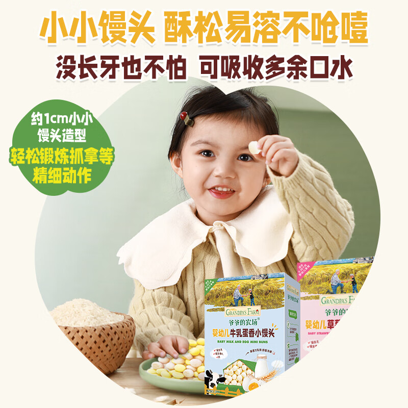 爷爷的农场婴幼儿牛乳蛋香小馒头78g 无添加宝宝零食 婴儿零食6-12个月