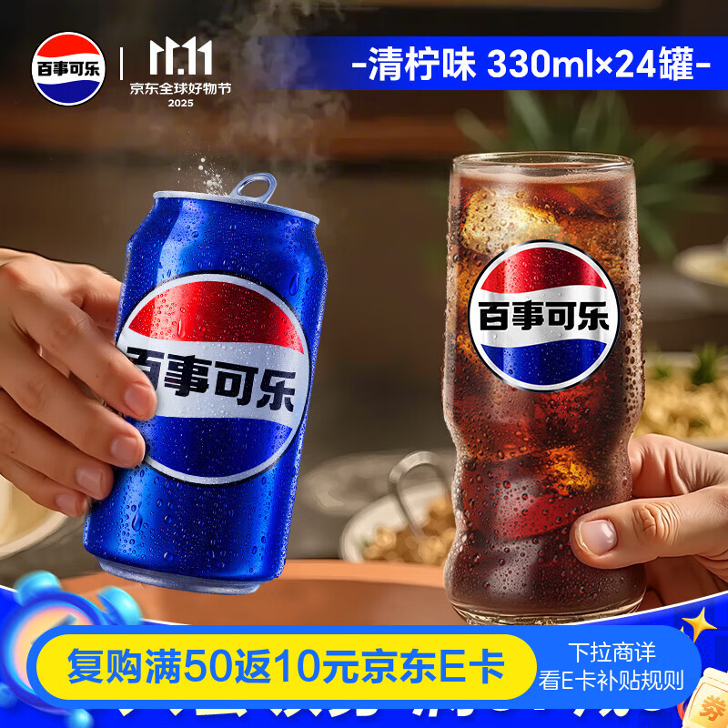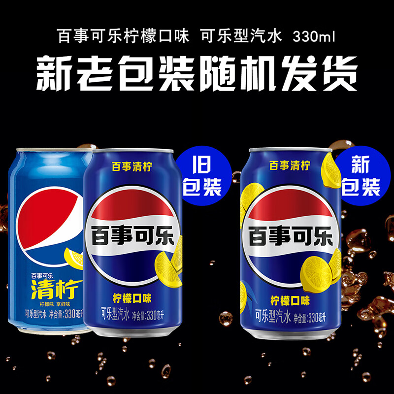 百事可乐Pepsi 清柠味碳酸饮料汽水 330ml*24听 整箱装