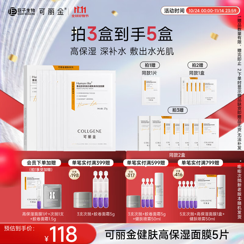 可丽金(COLLGENE)Human-like重组胶原蛋白健肤高保湿面膜 27g*5片