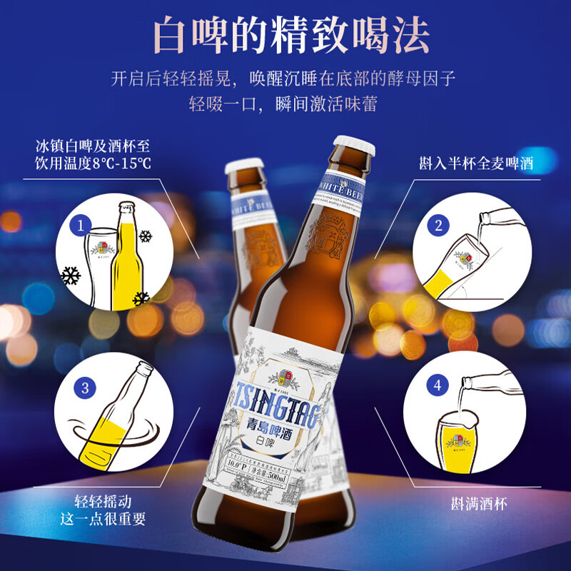 青岛啤酒(TsingTao)全麦白啤 原麦汁浓度10°P 500ml*12瓶 整箱装 双十一热卖