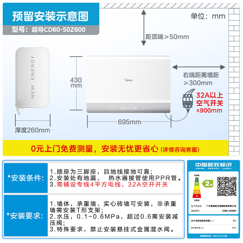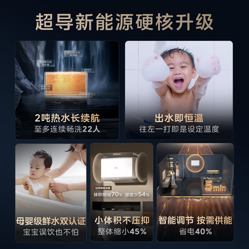 美的(Midea)【新能源超导Z600】超薄扁桶电热水器5000W瞬热洗节能恒温无内胆鲜活水热水器国家补贴以旧换新