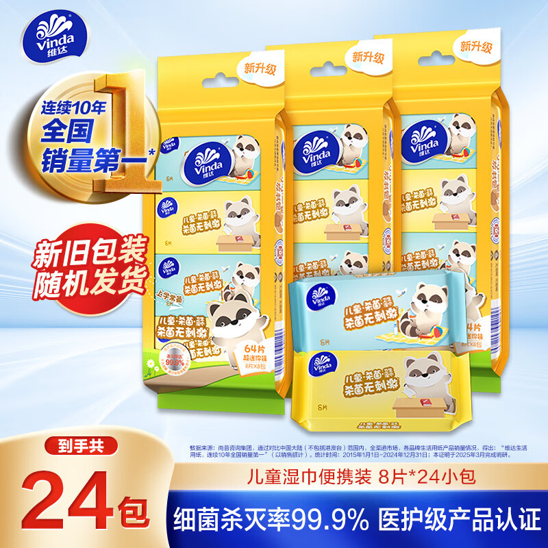 维达(Vinda)婴儿湿巾 学生儿童专用迷你便携出行婴儿手口湿纸巾小包 8片*24包